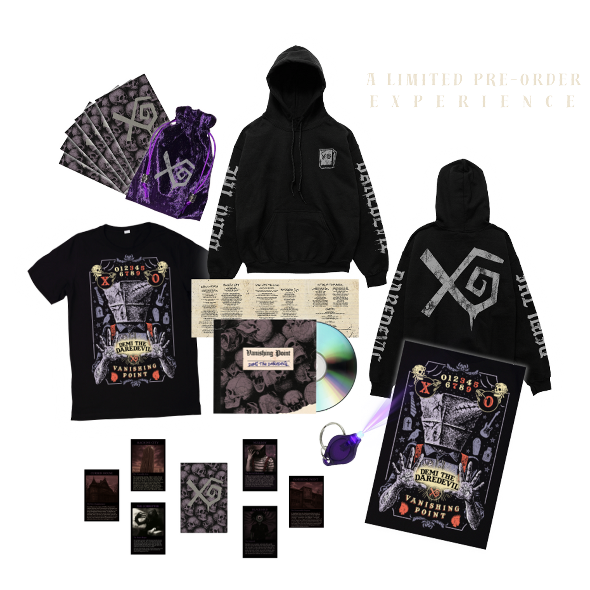 Piece together Nullboy’s forgotten past by exploring the eerie locations and shadow-selves of his mind. Every artifact in this collection, from the cards to the hoodie, the poster, and the birth certificate, pulls you further into the world of Vanishing Point.